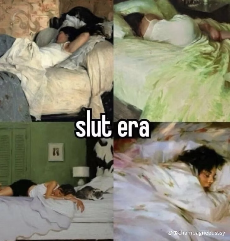 Mais en 2024 le sens de l’expression a radicalement changé pour le grand public. Moins de strass et paillettes, mais beaucoup plus de plaids et d'antidépresseurs pour évoquer ironiquement le nouveau type de slut-era. L’art du décalage mordant entre fantasmes et réalités porte enfin ses fruits sur les réseaux sociaux au point de devenir des trends irrésistibles pour les membres de la genZ et autres.